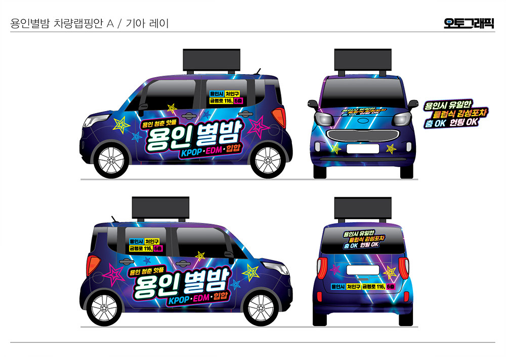 용인별밤 레이 차량랩핑광고